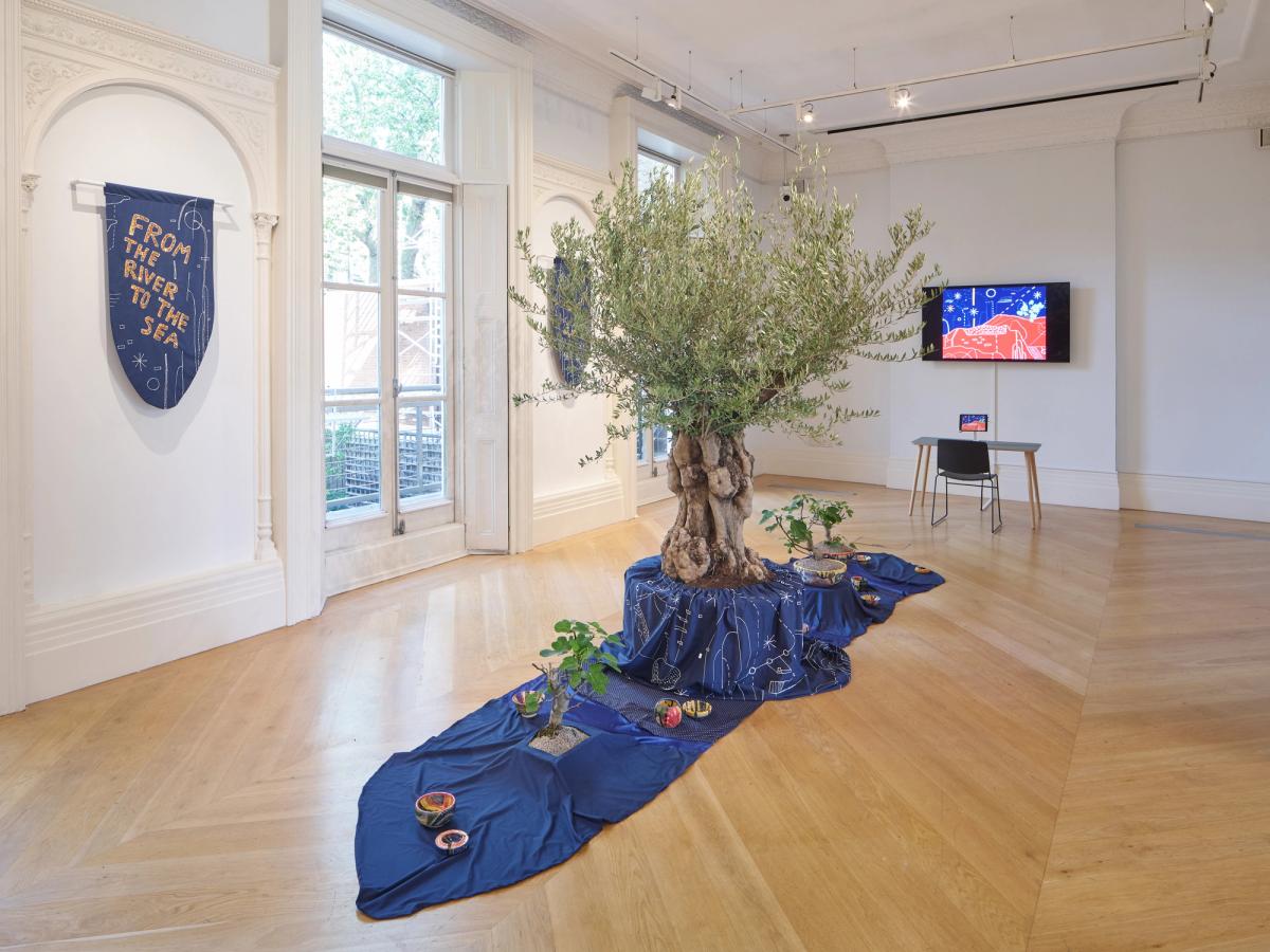 In the shade of the sun brings together new commissions from Mona Benyamin, Xaytun Ennasr, Dina Mimi and Makimakkuk at The Mosaic Rooms in London. Each of these artists are forging an entirely new language to think about and with Palestine. Their practices are connected in a radical politics, finding expressions in seemingly soft forms, absurd images, and poetic wanderings.
