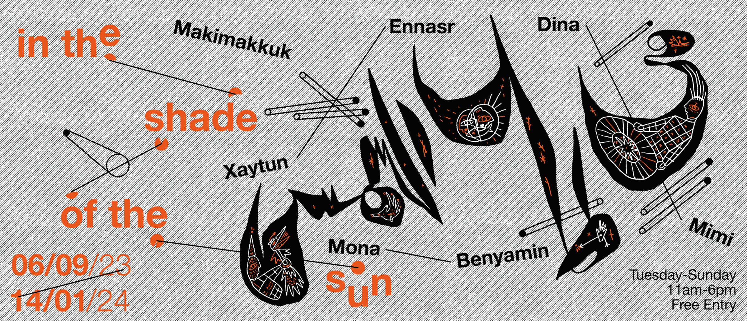 The public programming for In the shade of the sun builds on what Bilna’es’ exhibition conception already proposes. Methodologically, we need to radically rethink the formulations within which cultural and artistic work is produced, circulated, and consumed. For the burdensome demands of the art market and industry, the invisibilised labour of artists and cultural workers, as well as hierarchies and mediation configurations as we know them, are not conducive to thriving and sustainable futures. Aesthetically, and therefore politically, there is a need to continue the search for a new language to tackle the particularities of our present fascist neoliberal predicaments while also devising alternative assemblages, economies, and relations for an otherwise.