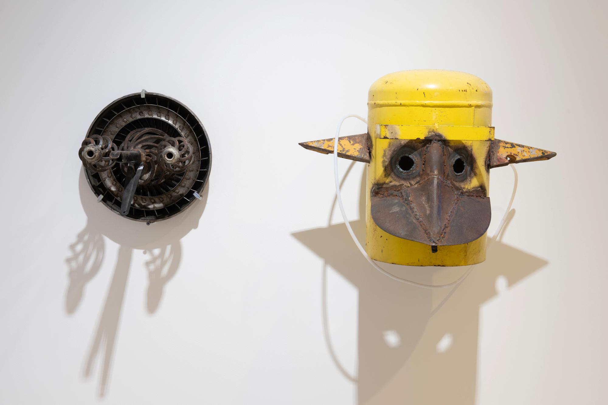 The masks that Oscar Gardea makes are all from waste he finds in junk yards, on the side of rural roads, and on borderlands. In his body of work Tecuani (Masks produced from waste)