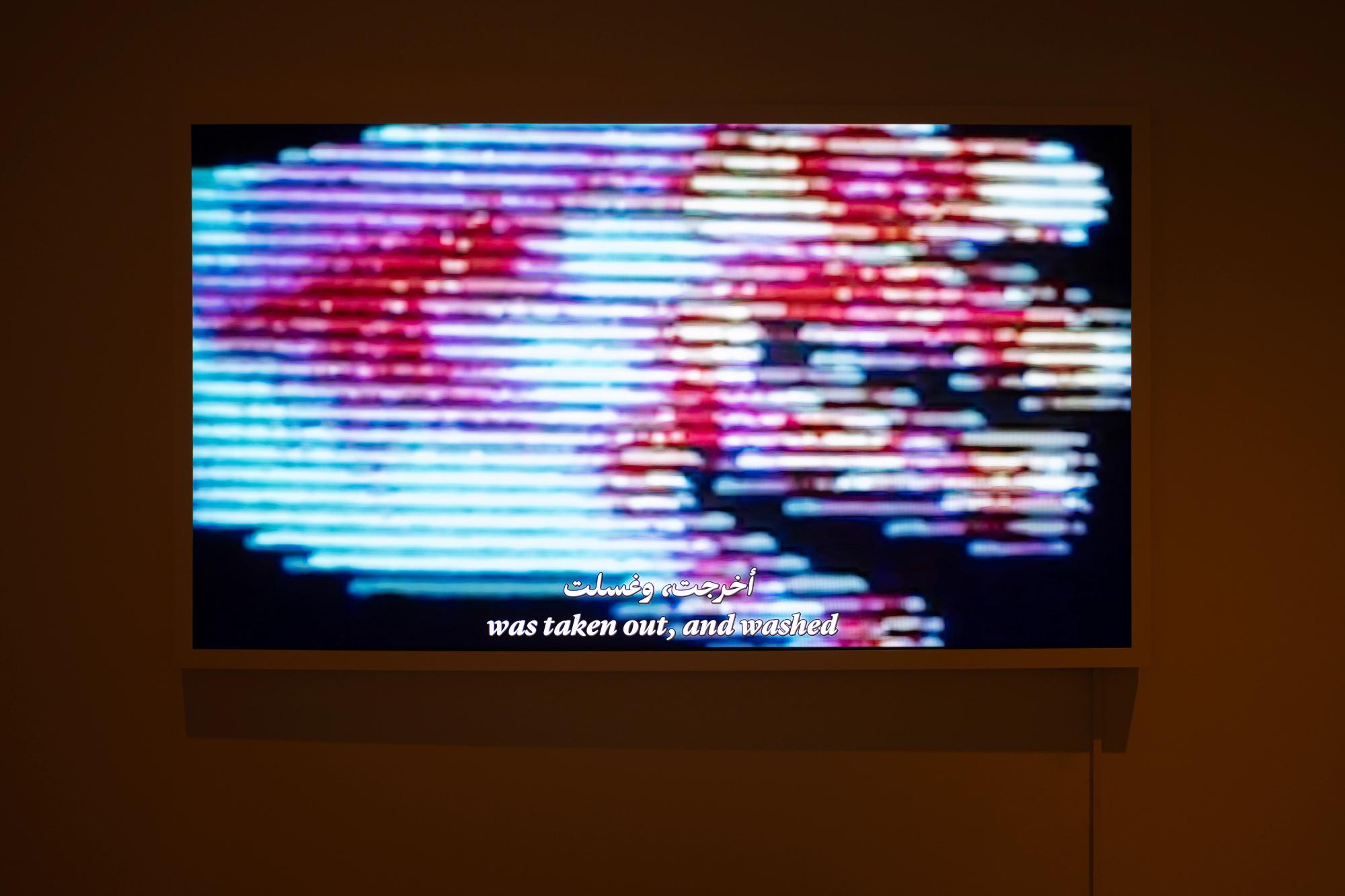 The wider project begins with a collection of online recordings of unknown figures (mostly from Palestine, Iraq, and Syria) performing through song, music, and dance either in the intimacy of their homes, or on a street, in a square, at a wedding, or on a beach having just found refuge. It takes these moments as the basis for new performances developed with electronic musicians and a dancer in Palestine (Makimakkuk, Julmud, Haykal, and Rima Baransi), responding to specific gestures, music, or texts from the archive. May amnesia examines the place and significance of voice in the form of song and oral poetry, and body in the form of dance and gesture as a political act of embodiment and becoming in a moment marked by various forms of colonial violence against entire living fabrics. The project repositions these moments as a material witness inscribed through body, movement, rhythm, and voice to the destruction of everyday life that is occurring or has occurred. Equally, it is also one of the most critical ways in which these fractured communities are resisting their own erasure and laying claim to space, self, and community once more. Often, quite literally embodying and performing through their bodies and voice within and against these violences through renewed rituals of movement and song. At times splintering, even if momentarily, the various regimes of power that have rendered them uncounted, inaudible. — Basel Abbas and Ruanne Abou-Rahme