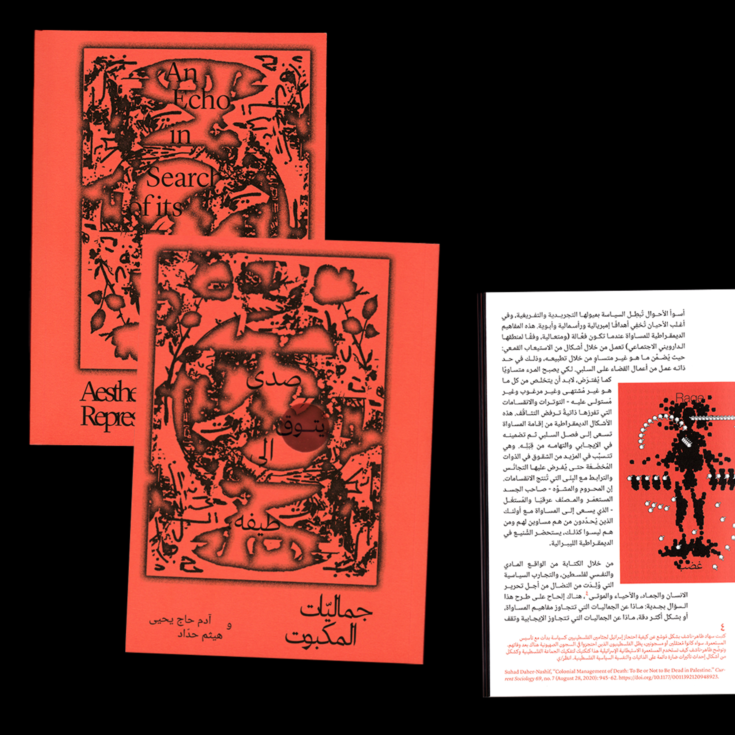 What aesthetic practices have Palestinians been employing throughout their revolutionary anti-colonial tradition, both historically and in contemporary times? How can we read the performative gestures, image-making techniques, and singing replete in Palestine’s streets as ones embedded within a collective psychosocial and material experience and not as arbitrary isolated events? In An Echo in Search of its Shadow, Aesthetics of the Repressed Adam HajYahia and Haitham Haddad formulate an aesthetic theory of revolt by examining anti-colonial praxis. Unfolding through analysis, image-making, and poetics, HajYahia and Haddad assemble a new framework from which to understand dialectics between the visual and the audial, body and soul, form and content. Instead of the usual approach to aesthetics and politics where aesthetics are practiced and politics are thought, An Echo in Search of Its Shadow urges us to practice politics and think aesthetics.
