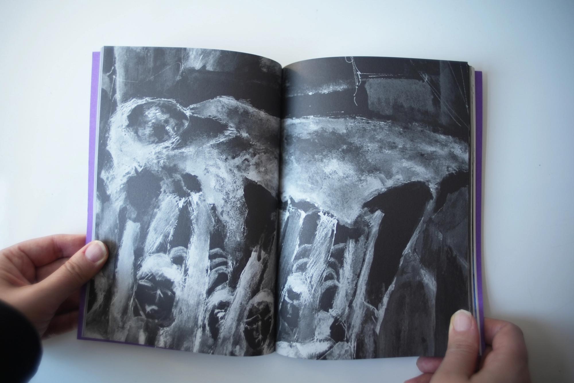 Accompanying their text are images from their works, and drawings by the late Tawfik Abou-Rahme, Ruanne Abou-Rahme’s father. These materialize an intergenerational conversation of perseverance and resistance, as with each piece of paper an aesthetic of indebtedness and inheritance is written and rewritten.