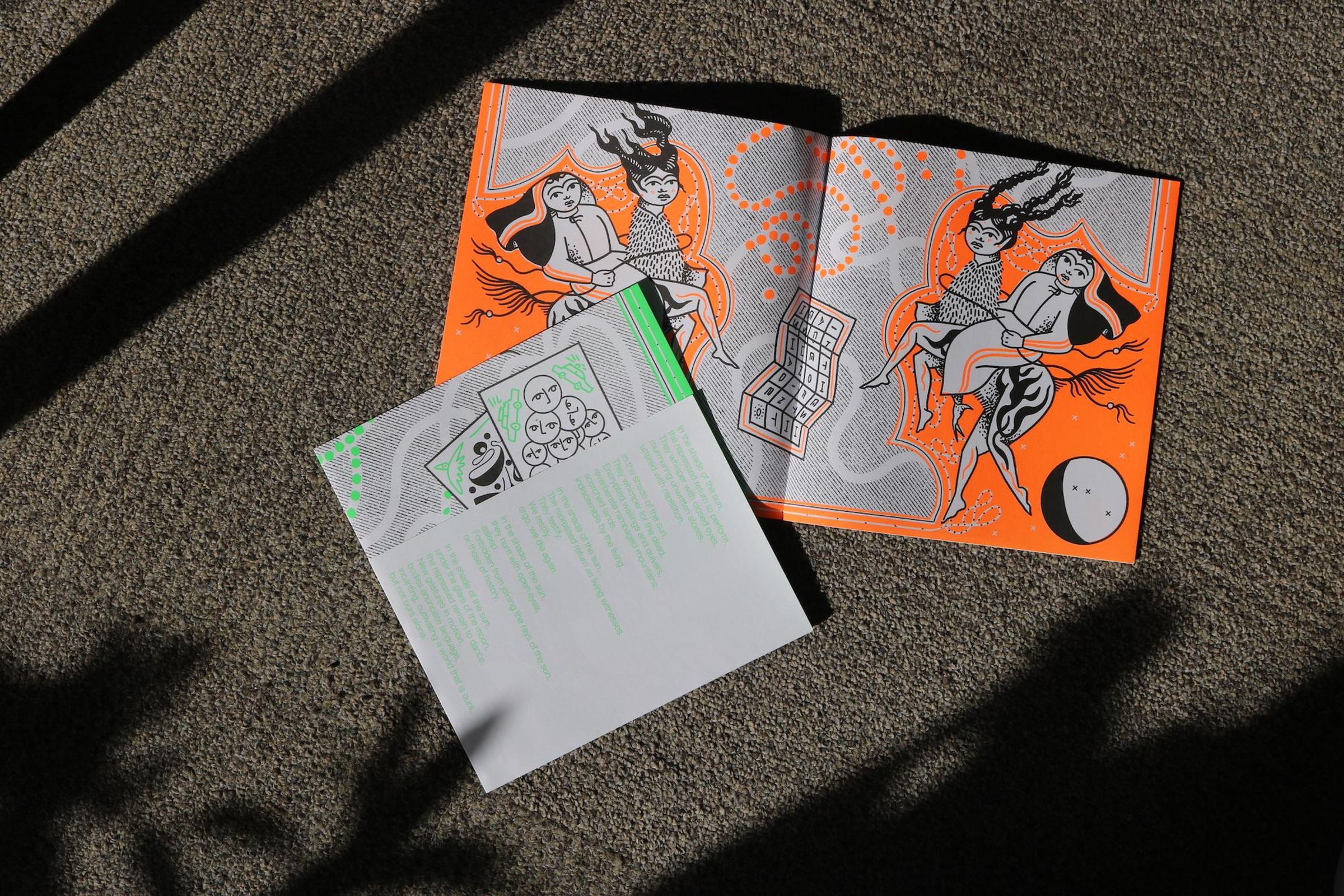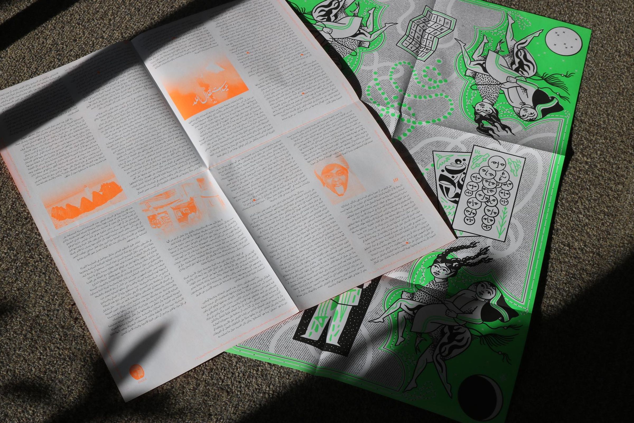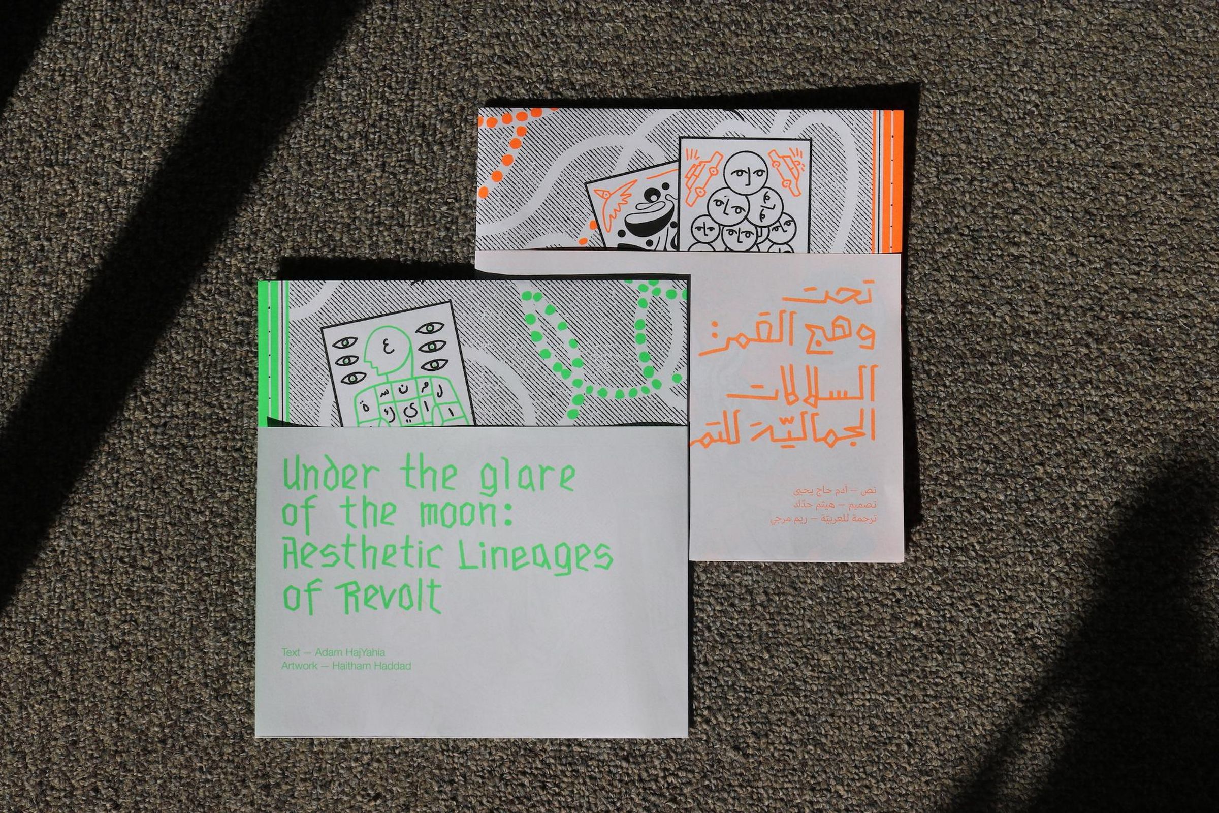We are thrilled to announce our first printed publication, Under the glare of the moon: Aesthetic Lineages of Revolt written by Adam HajYahia with an accompanying artwork by Haitham Haddad.